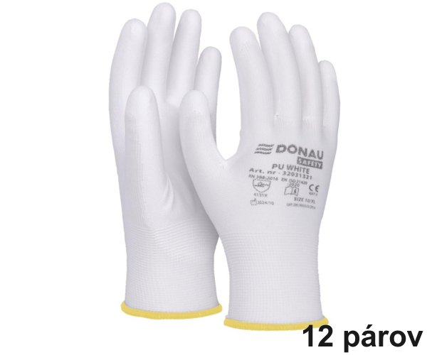 DONAU SAFETY PU kat. II rukavice pletené, polomáčané biele / 12 párov