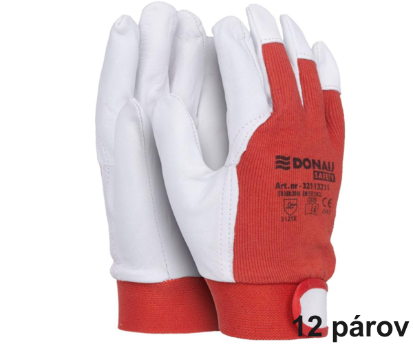 DONAU SAFETY rukavice pracovné kombinované bielo-červené / 12 párov