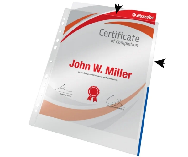 Kvalitný euroobal značky ESSELTE s modrým bočným prúžkom zabezpečuje spoľahlivú ochranu a prehľadnosť dokumentov formátu A4. Vďaka farebnému okraju umožňuje jednoduché triedenie a rýchly prístup k dokumentom.
