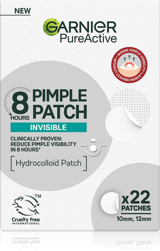 Garnier Pure Active Pimple Patch 22 pcs, anti-blemish patches, acne care, BHA, quick help for pimples, protection against impurities, Slovak synonyms: acne patches, pimple patches, anti-spot patches, healing face patches.