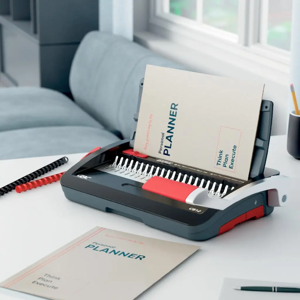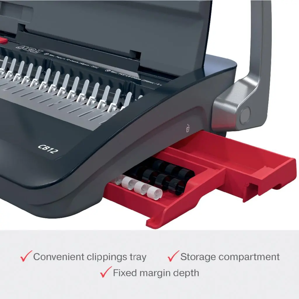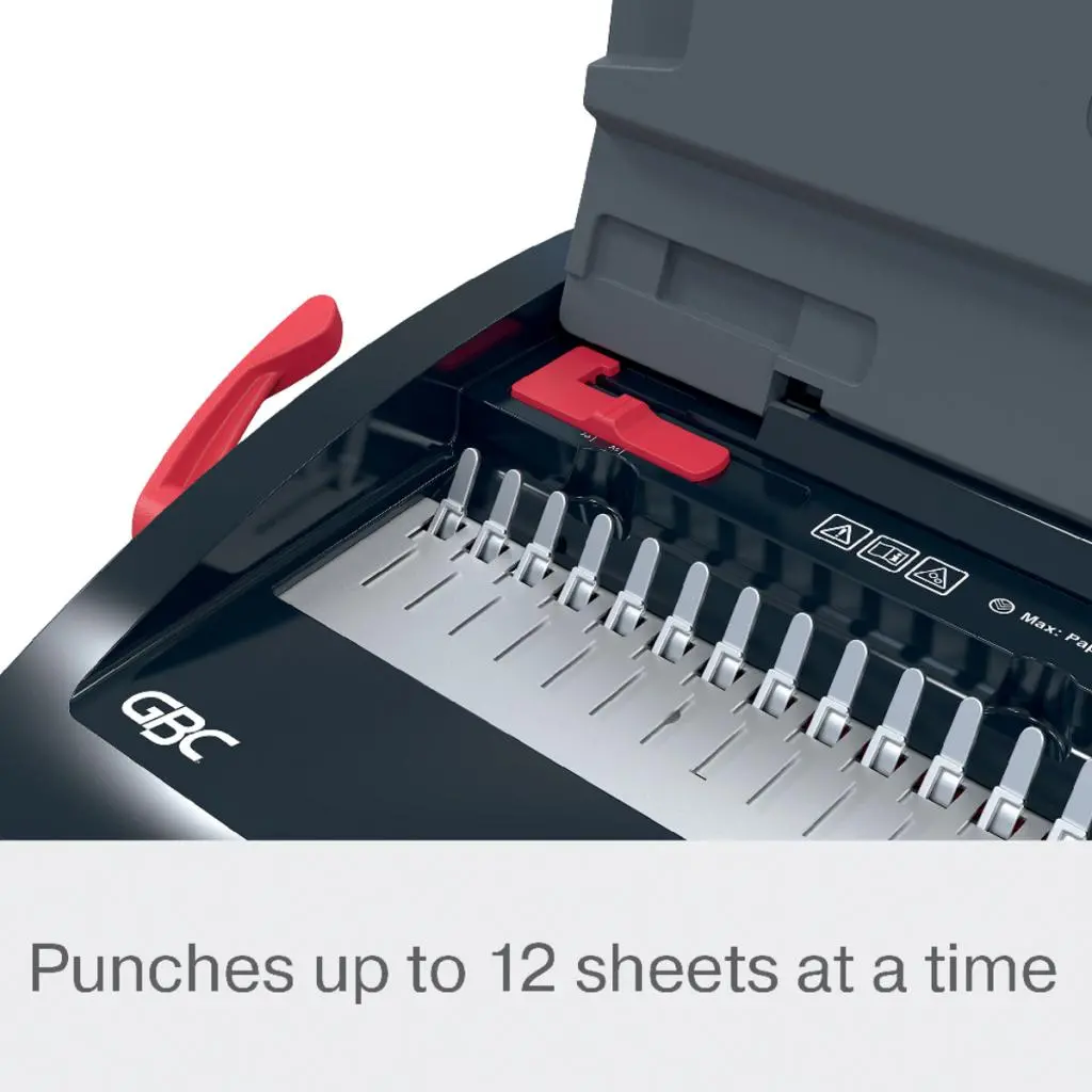 CombBind® CB12 je spoľahlivý a kompaktný ručný viazač určený na domáce použitie alebo pre malé kancelárie s nižším objemom väzby. Dokáže prederaviť až 12 listov papiera (80 g/m²) naraz a zviaže dokumenty s kapacitou až 165 listov pomocou chrbtov s priemerom 19 mm. Je ľahký, priestorovo úsporný a ľahko prenosný, takže ho môžete používať kdekoľvek a jednoducho odložiť, keď ho nepotrebujete.
