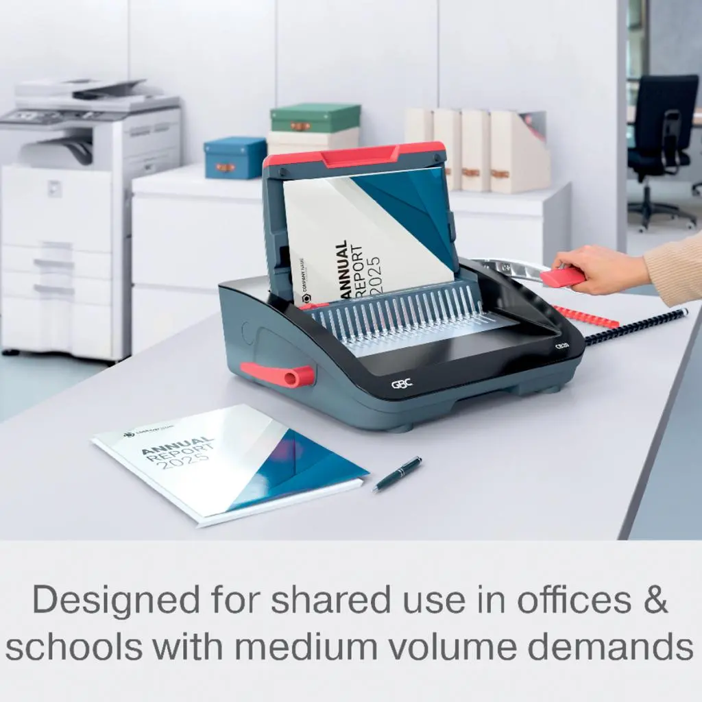 CombBind® CB20 je spoľahlivý a kompaktný ručný viazač s plastovými chrbtami, ideálny pre zdieľané používanie v kancelárskom a školskom prostredí. Umožňuje prederaviť až 20 listov papiera (80 g/m²) naraz a zviazať dokumenty s kapacitou až 240 listov pomocou chrbtov s priemerom 28 mm. Vďaka ľahkému a priestorovo úspornému dizajnu sa jednoducho používa aj ukladá, keď sa nepoužíva.