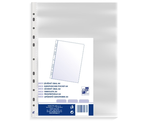 Kvalitný euroobal značky Karton PP je určený pre bezpečné a reprezentatívne uloženie dokumentov formátu A4. Vyrobený z pevného a priehľadného polypropylénu s vysokou hrúbkou 140 mikrónov poskytuje mimoriadnu ochranu proti poškodeniu. Vďaka lesklému povrchu sú dokumenty ľahko čitateľné a pôsobia profesionálne.