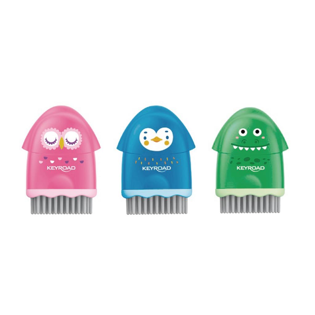 KEYROAD Rocky-Docky jednoduché plastové strúhadlo, šikovné a ľahko skladovateľné. So zábavnou potlačou, ktorá upúta pozornosť. Kombinuje tri funkcie: strúhadlo, gumu a štetec a vďaka tejto jedinečnej kombinácii je mimoriadne praktický na každodenné použitie. Priemer otvoru: 8 mm. Balenie: blister. Farba: mix farieb.