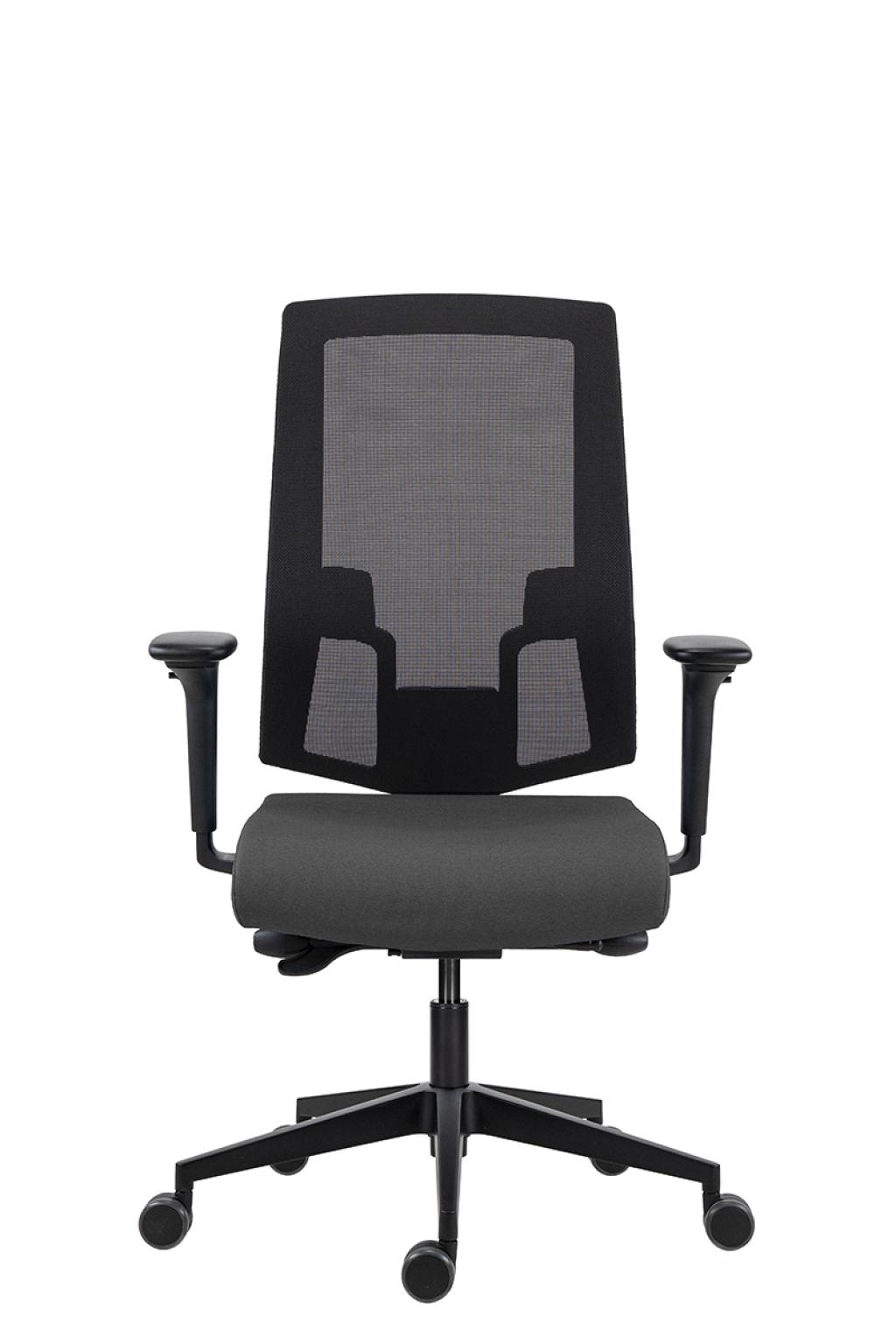- Kancelárska stolička s čalúneným sedákom a čiernou sieťovinou na operadle