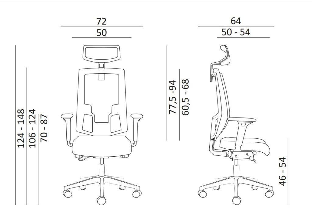 - Výška sedáku: 46 – 54 cm