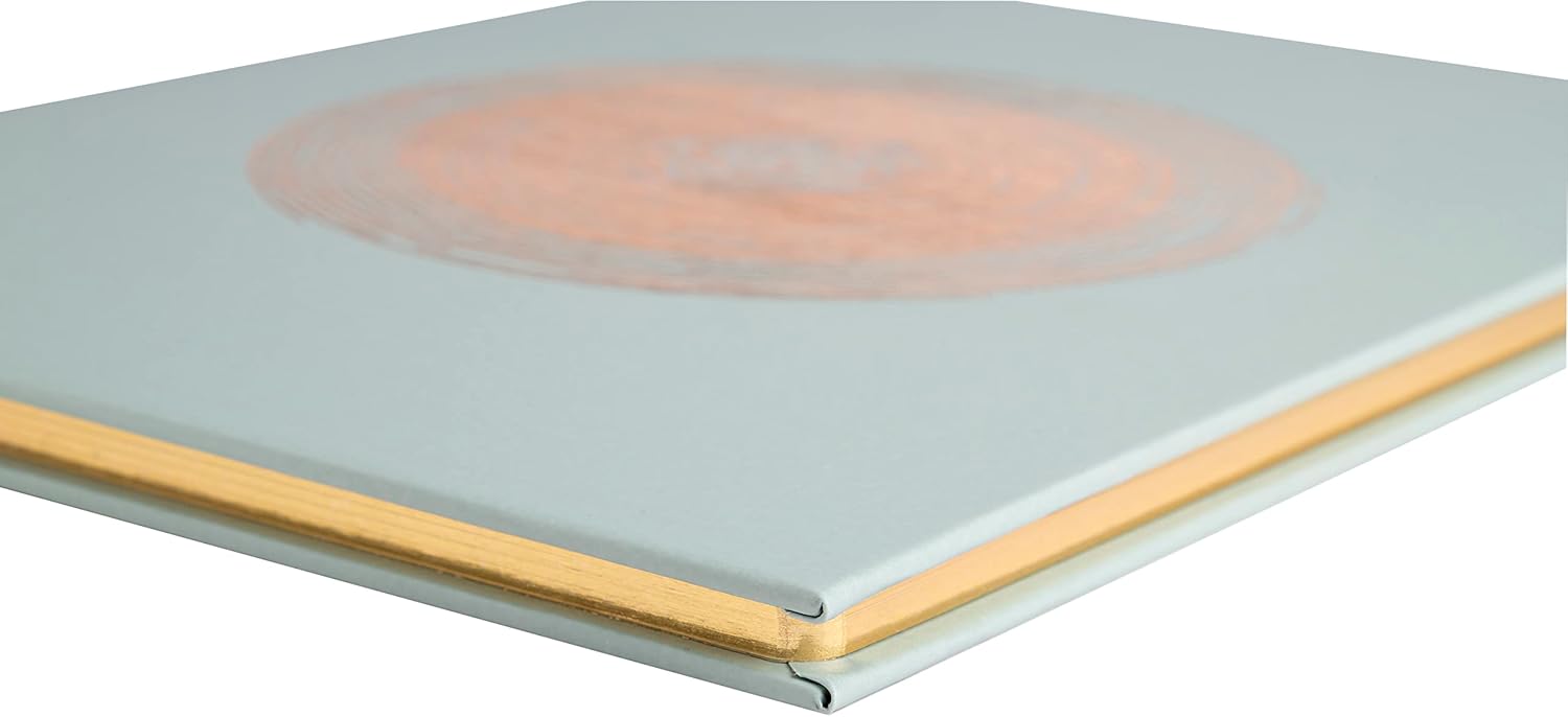 Vertikálny formát 27 × 22 cm ukrýva 100 strán so zlatou hranou.