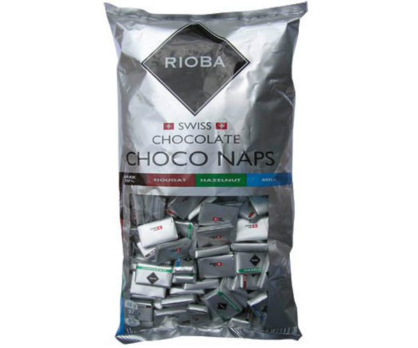 RIOBA Mini Čokoládky Mix ponúka prémiovú švajčiarsku čokoládu v praktických napolitánkach po 4–5 g. Balenie 1 000 g obsahuje približne 215 jednotlivo balených kúskov v štvorici príchutí: