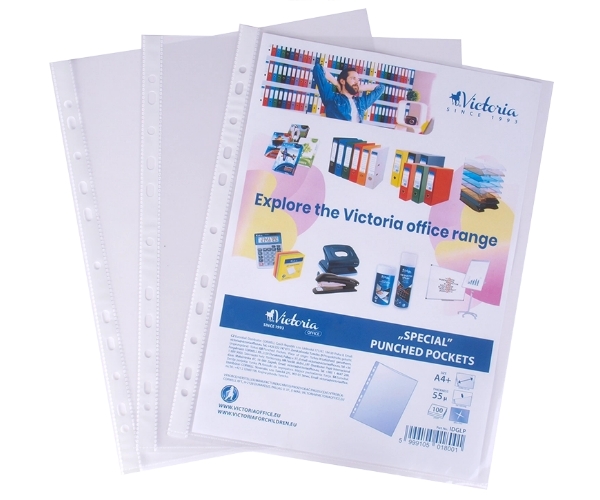 Euroobal A4+ VICTORIA OFFICE 55 mikrónov číry priehľadný zosilnené okraje 11 otvorov balenie 100 ks kancelárske potreby |