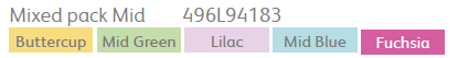 - balenie: maslová, zelená, fialová, modrá, ružová